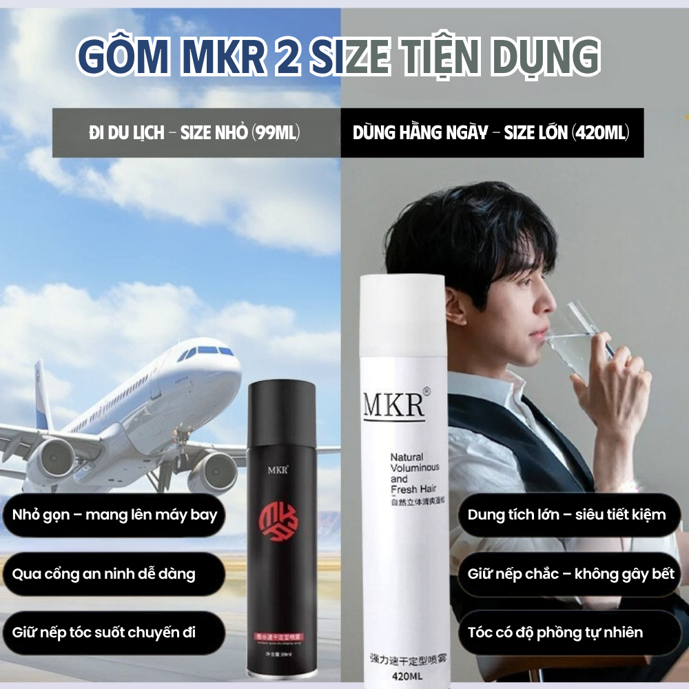 Gôm Xịt Tóc Nam MKR – Giữ Nếp Hoàn Hảo, Tạo Kiểu Chuẩn Phong Cách