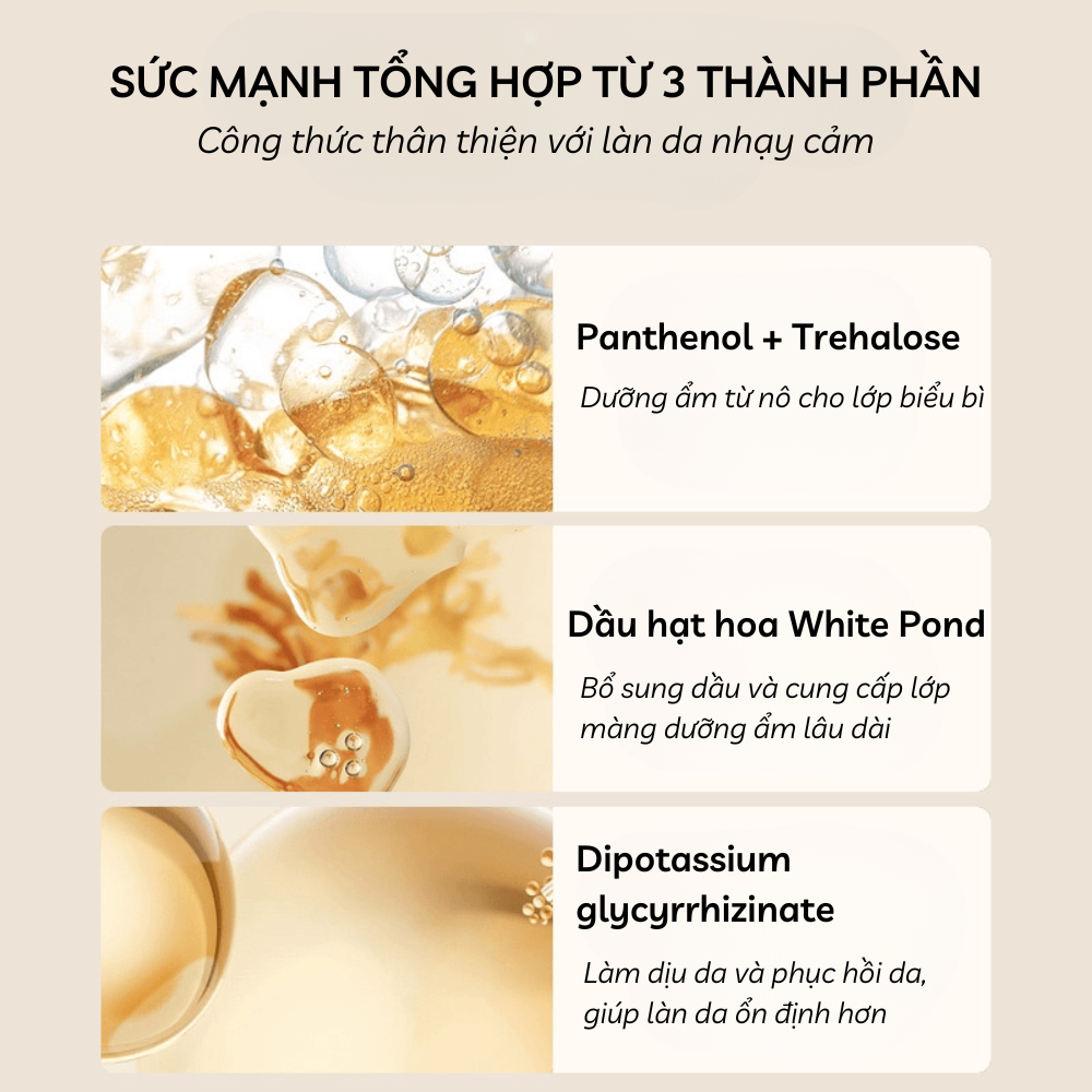 Panthenol (B5) + Trehalose: phục hồi và cấp ẩm sâu