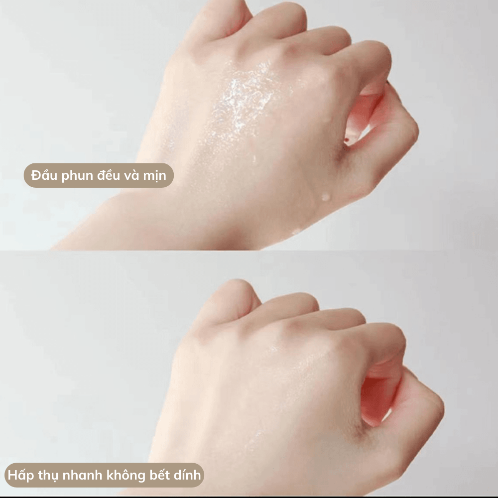 Nhấn vòi xịt để tạo lớp sương mỏng phủ đều lên da.